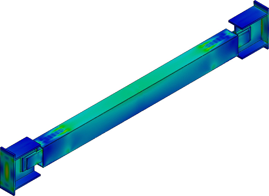 中興社研製團隊依據客製化訂單需求,設計抗挫屈消能斜撐必要之核心消能板與斜撐等構材,並藉消能板設計技術及有限元素模型準確掌握抗挫屈消能斜撐性能變化及塑性行為發展,確保客製化產品的整體消能效果。
